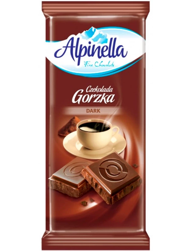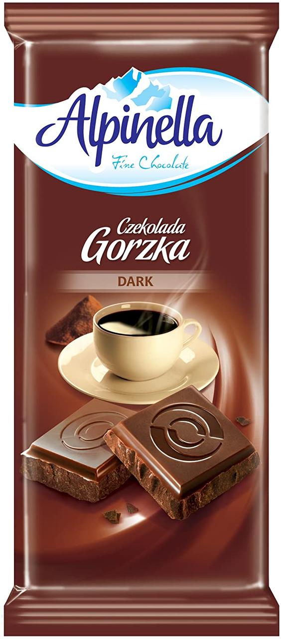Шоколад ALPINELLA Czekolada Gorzka DARK,90 г, ПОЛЬША Чорний, гіркий шоколад Alpinella. Чорний шоколад має входити в раціон кожної людини як засіб профілактики серцево-судинних захворювань. Речовини, які входять до складу шоколаду, перешкоджають утворенню тромбів у судинах серця й мозку.