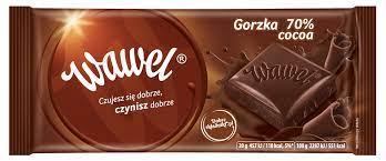 Шоколад чорний гіркий 70% Wawel Gorzka 70% cocoa 100 г Польща Темний шоколад Gorzka Wawel — це класичний натуральний смак, поміщений у повноцінну шоколадну плитку. Ви знайдете аж 70% какао-маси з найкращих сортів какао. Містить олію какао та лецитин із сертифікованих соєвих бобів (без ГМО), не містить пальмової олії, ароматизаторів та Е476.