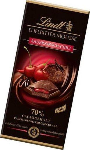 Шоколад Lindt Sauerkirsch Chilu Mousse 70% Шоколад Lint втілює пристрасть і майстерність його майстрів Lint Swiss Master Chocolatiers. Lint дарує унікальні шоколадні відчуття, пропонуючи чітко м’який багатий і вишуканий смак Ідеально підходить для подарунка, начинки цукерок або в якості індивідуального задоволення. Завдяки високому вмісту какао шоколад Lindt Creation Cherry & Chilli має смак класичного темного шоколаду, який підкреслять вогненно-пристрасним поєднанням вишні та гострого перцю чилі. Насолоджуючись цим шоколадом ви, непомітно для себе, опинитеся в шоколадному раю!!!