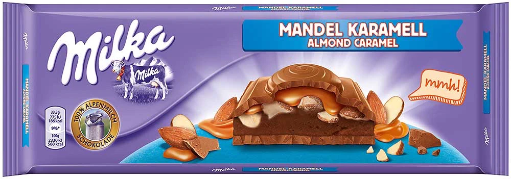 Шоколад Milka Mandel Caramel (з карамеллю і мигдалем) Швейцарія 300 г Milka Mandel Caramel — це молочний шоколад із альпійським молоком і прошарками з карамелі та цілісного арахісу всередині. Оригінальне поєднання смаків. Велика кількість горіхів і карамелі в одній шоколаді подарують справжнє задоволення й задоволення. Справжні ласощі для гурманів. Весь шоколад Milka виробляється з натурального альпійського молока та інших компонентів. які проходять ретельний добір і відповідають найвищим критеріям якості. Завдяки цьому шоколад фабрики Mondel Systemz International має високі смакові якості та дуже давно має великий попит і популярність на світовому ринку.