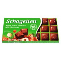 Schogetten з, 100 г — чудовий молочний шоколад із додаванням подрібненого лісового горіха.Виробництво шоколаду Шогетний бере початок 1857 року.У складі чорний шоколад Alpine Milk with Hazelnutsиміє тільки компоненти найвищої якості. У процесі виготовлення шоколаду всі етапи проводяться під суворим німецьким контролем. У коробці шоколаду Schogetten містяться 18 смачних солодких квадратика, які укладені в суцільну плитку шоколаду, що дає змогу поділитися з друзями та подарує незабутні враження та насолода від смаку.