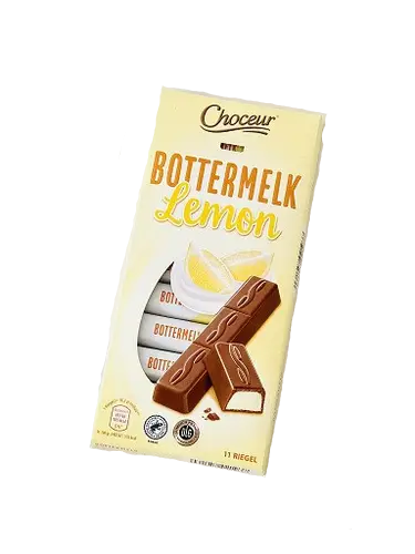 Шоколад молочний з лимонно-вершковим кремом Choceur Bottermelk Lemon 200г Німеччина Молочний шоколад з вершковим начинкою. 11 ригелів в індивідуальній упаковці – це дуже зручно.