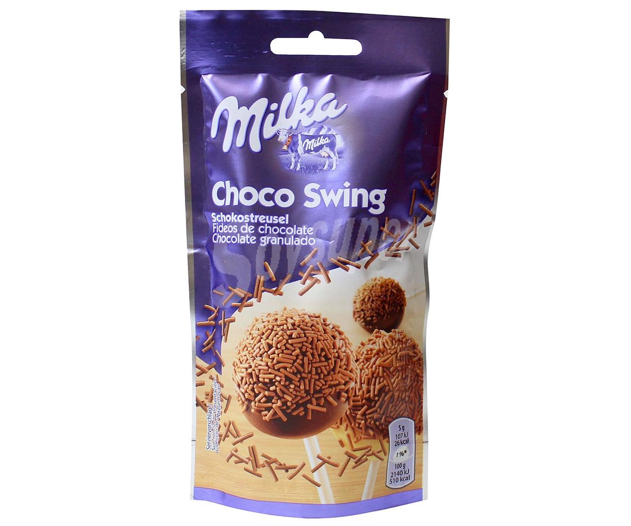Шоколадна посипка Milka Choco Swing 75 г Швейцарія Шоколадна посипка з молочного шоколаду у формі дрібних тонких вермішельок.