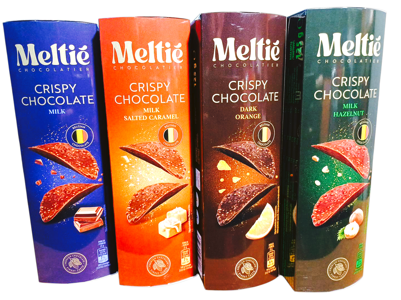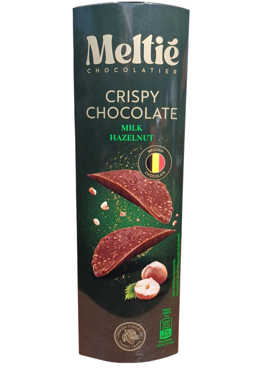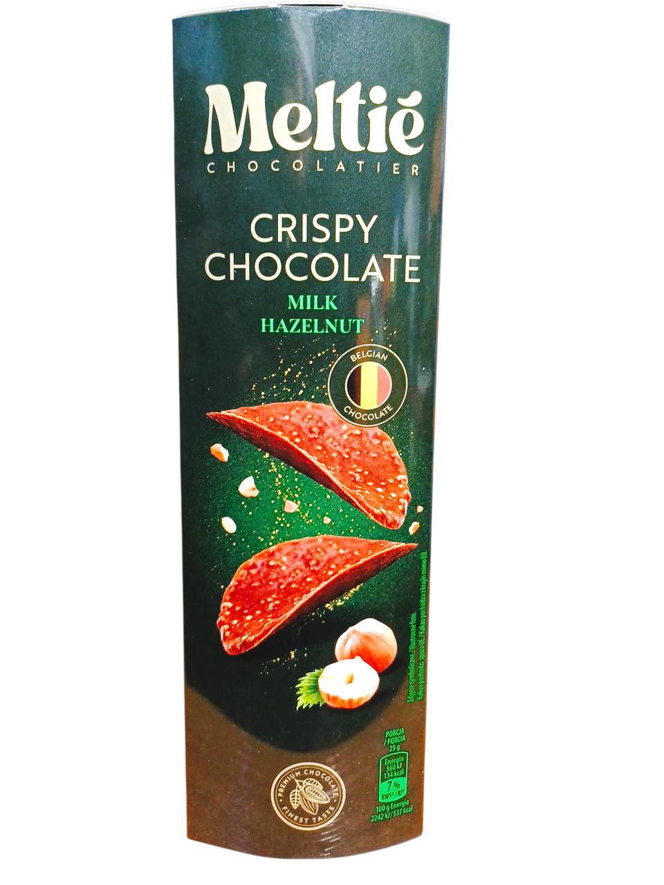 Шоколадні чіпси Meltie Crispy Chocolate Milk Hazelnut 125г Бельгія Шоколадні чіпси Meltie – це справжня знахідка для всіх поціновувачів солодкого, які прагнуть знайти щось оригінальне та вишукане. Поєднання хрусткої текстури та насиченого шоколадного смаку дарує незабутні враження з кожним шматочком. Вони стануть чудовим частуванням до чаю або кави, ідеально доповнять десерти та випічку, а також стануть оригінальним подарунком для близьких. Meltie – це унікальні шоколадні чіпси, що поєднують у собі два головні елементи: – хрумку основу, що робить кожен шматочок неймовірно апетитним. – Ніжний шоколадний шар, що тане у роті, залишаючи насичений, глибокий смак. Ця досконала комбінація хрумкого та ніжного дарує неймовірне задоволення, а витончений аромат шоколаду посилює враження від кожного шматочка. Вишуканий шоколад найвищої якості.У виробництві Meltie використовуються лише найкращі сорти шоколаду, що проходять ретельний відбір та контроль якості. Завдяки цьому чіпси мають: насичений смак – глибокий шоколадний з м’якою насолодою та ледь відчутною гіркуватістю; шовковисту текстуру – ніжний шоколад тане у роті, залишаючи приємний післясмак; вишуканий аромат – натуральний аромат какао-бобів, що надає витонченості кожному шматочку. Таке поєднання робить шоколадні чіпси Meltie неперевершеним вибором для справжніх гурманів.