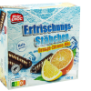 Шоколадні цукерки ( палички) з апельсиново-лимонним соком Mister CHOC 150 г Німеччина Легендарні Erfrischungs-Stabchen — освіжні палички з апельсиново-лимонним соком — смачні ласощі. Чудові палички з темного шоколаду та хрусткої цукрової скоринки з рідкою начинкою з апельсина та лимона. Палички смачніші за все, коли вони лежать у холодильнику. Палички були особливо популярним продуктом упродовж десятиліть.