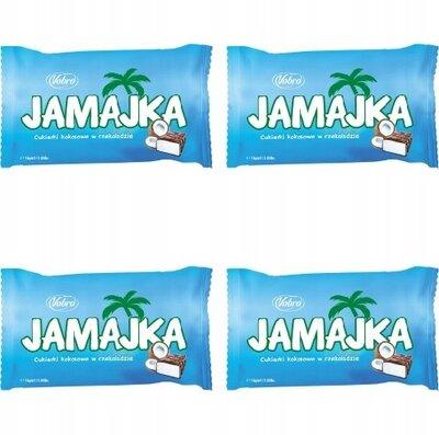 Шоколадні цукерки Ямайка Vobro Jamajka 500 г Польща Смачні кокосові цукерки в шоколаді нагадають вам смак дитинства. Склад: цукор, жир (пальмова та ши в різних пропорціях), суха сироватка (від молоко) какао-маса молоко знежирене сухе, какао-олія, пшенична борошно, кокосова стружка 1,1%, молочний жир, ароматизатори, емульгатори: лецитини (з сои) и Е 467, соль. Шоколад — какао терте не менш ніж 43%. Продукт може містити арахіс, фундук і мигдаль. Продукт містить шоколад, у літній сезон за високих і дуже високих температур можливе плавлення шоколаду в транспорті. Клієнт, що говорить продукт, повністю усвідомлює і приймає цю можливість. Найчастіше це може статися, коли посилка довго лежить у посильному автоматі.