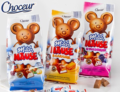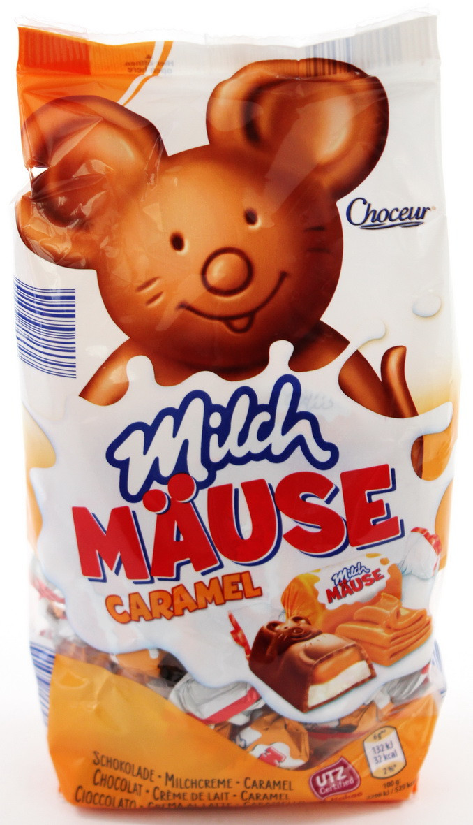 Шоколадні цукерки з горіхово-вершковою начинкою Choceur Milch Mause Hazelnuss 210 г Німеччина Шоколадні цукерки Chateau Milch Mause Caramel з вершковим кремом і карамеллю, 210 г. – веселі шоколадні цукерки Шато у формі мишок із ніжною вершковою начинкою та карамеллю потішить своїм смаком і дітей і дорослих. Це один із найкращих виробників кондитерських виробів у Німеччині.