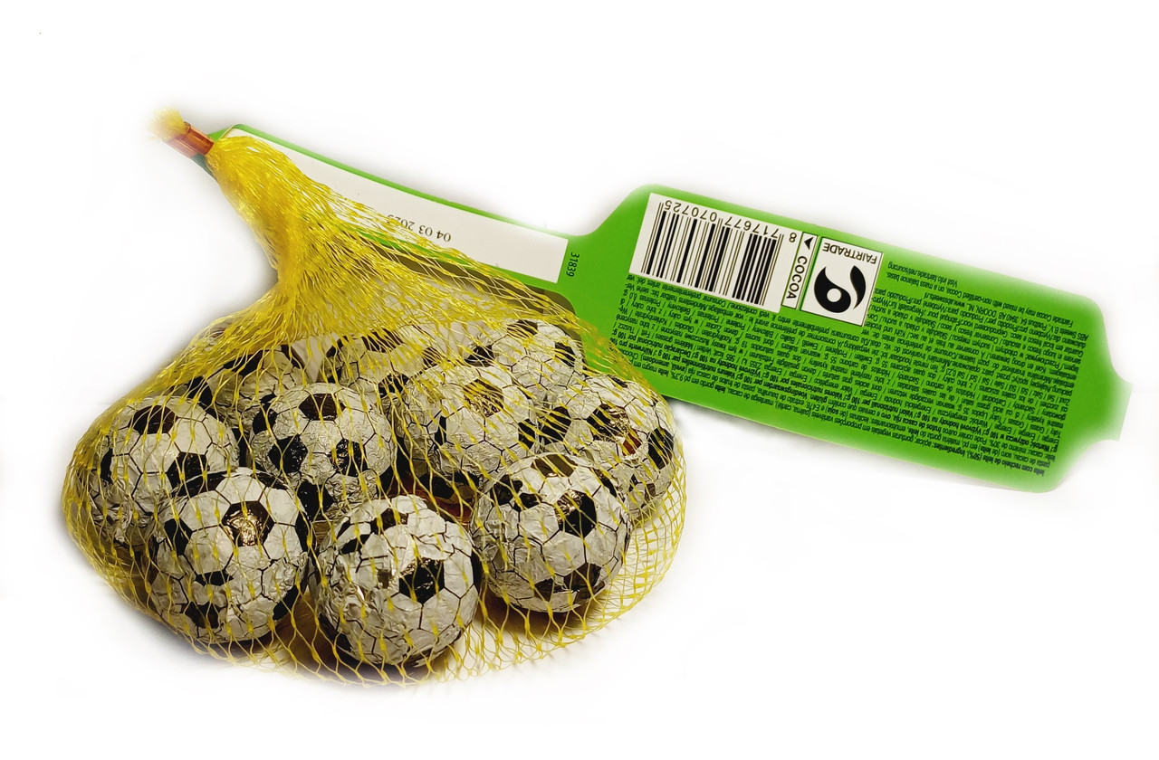 Шоколадні цукерки з молочного шоколаду з кремом Футбольні м’ячики 100 г Нідерланди Шоколадні цукерки з молочного шоколаду з молочним кремом (50%) Футбольні м’ячики чудовий подарунок для юних футболістів.
