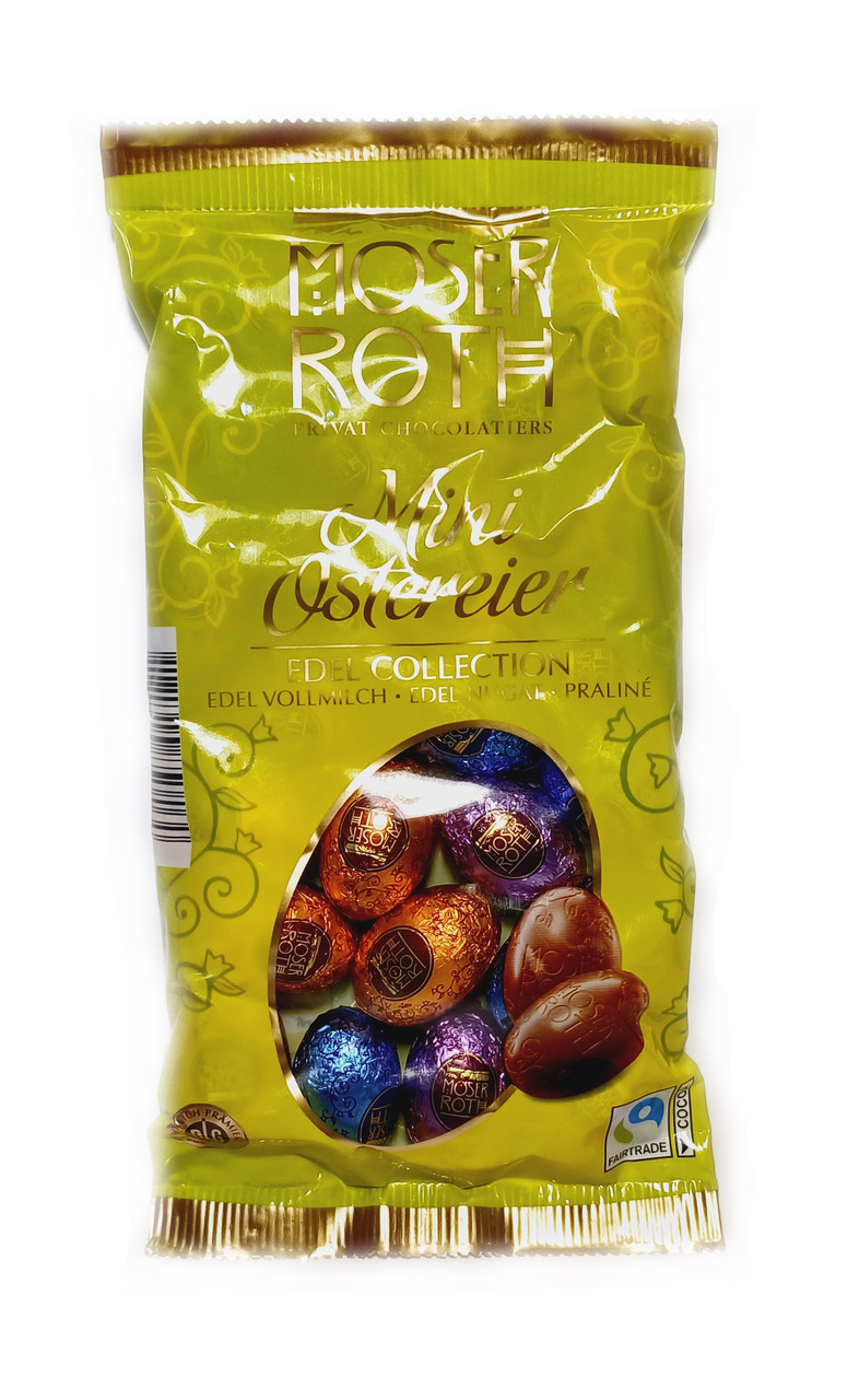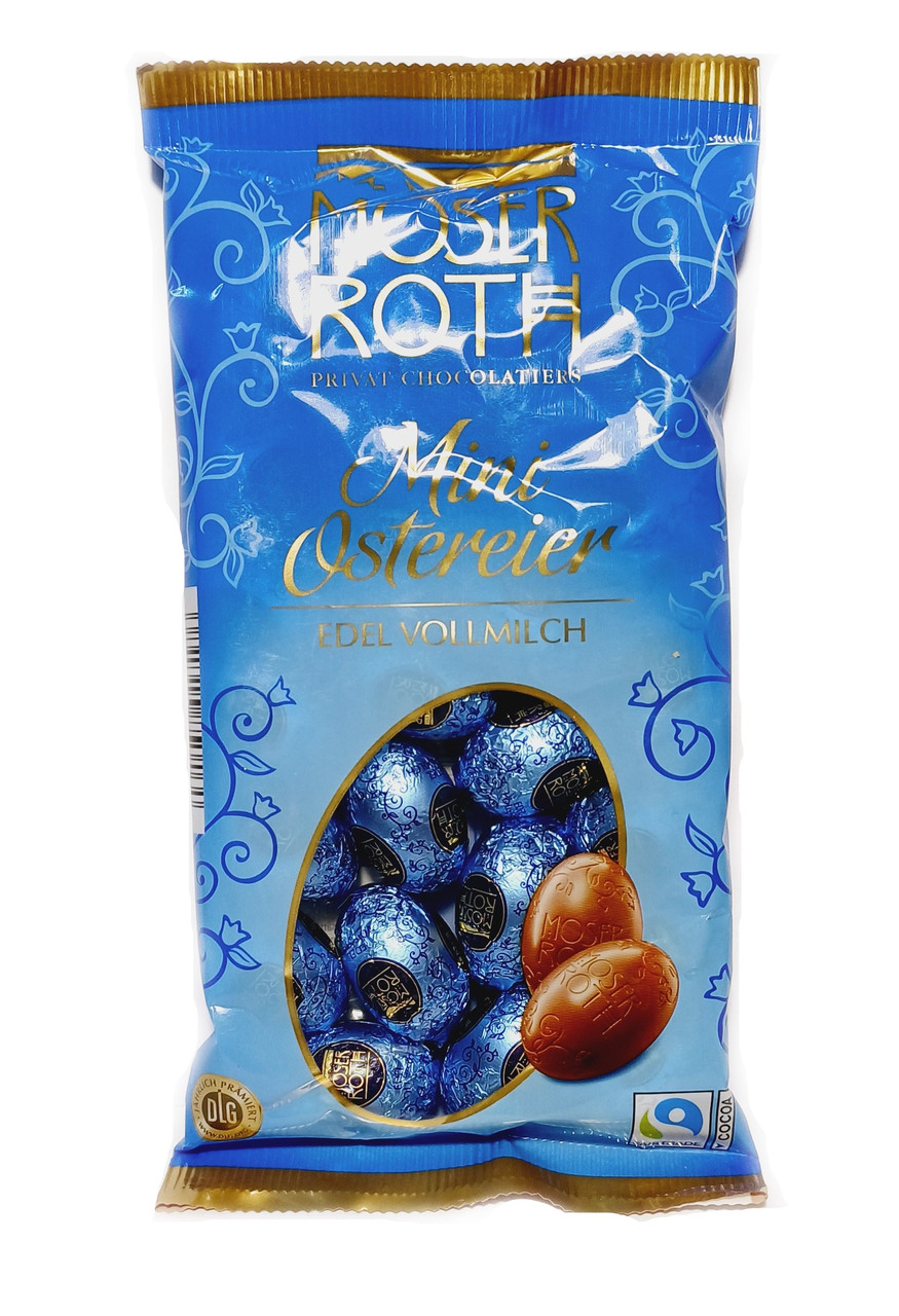 Шоколадні кульки Moser Roth Mini Chocoladenkugeln Edel Vollmilch 150 г Німеччина MOSER ROTH з 1896 року ім’я Moser Roth символізує вишукану насолоду шоколадом і шляхетні композиції. Цукерки Moser Roth виготовлені з ніжного шоколаду, що тане в роті, який вражає делікатною насолодою і є втіленням задоволення. Шоколад не нудотний, помірно солодкий і неймовірно натуральний. Кожна цукерка упакована в блискучу обгортку з вибитим логотипом виробника. Для створення шоколаду Moser Roth Mini Chocoladenkugeln були відібрані найкращі какао-боби, вирощувані на екологічно чистих плантаціях. Усі етапи виробництва проходять серйозний контроль і відповідають стандартам Faitrade. Німецький виробник шоколаду пропонує широкий асортимент вишуканого шоколаду з різноманітністю смаків і оригінальних поєднань: начинка з найніжнішого праліне, солодкої тягучої нуги або з натурального чорного шоколаду.