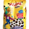 Miami Hopki — зернові кульки з шоколадним смаком. Шоколадні кульки — це ідеальний сніданок для всієї родини і прекрасна альтернатива звичайним пластівців. Для приготування продукту потрібно всього-лише залити кульки молоком, йогуртом або кефіром, і сніданок готовий. Кульки мають приємний шоколадний аромат і смак, який прекрасно поєднуються з молоком. Крім того, вони дуже корисні, адже до складу входять багато вітамінів і мікроелементів. Смачний і корисний сніданок з шоколадними кульками особливо сподобається дітям. Головною особливістю даних пластівців в наявності їх складі 10 видів вітамінів, які додадуть організму сили і енергію на цілий день. До складу продукту включені тільки натуральні інгредієнти.