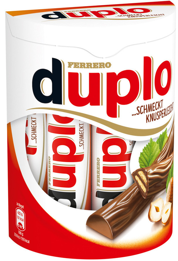 Шоколадний батончик Ferrero Duplo (10штх18.2г) 182г Німеччина Шоколадний батончик від всесвітньо відомої компанії Ferrero. Всі ми знаємо, що вони вміють робити наивкуснейшие шоколадні солодощі. Дупло — не виняток! Хрустка вафелька з прошарком горіховою нуги, покрита шаром молочного шоколаду.