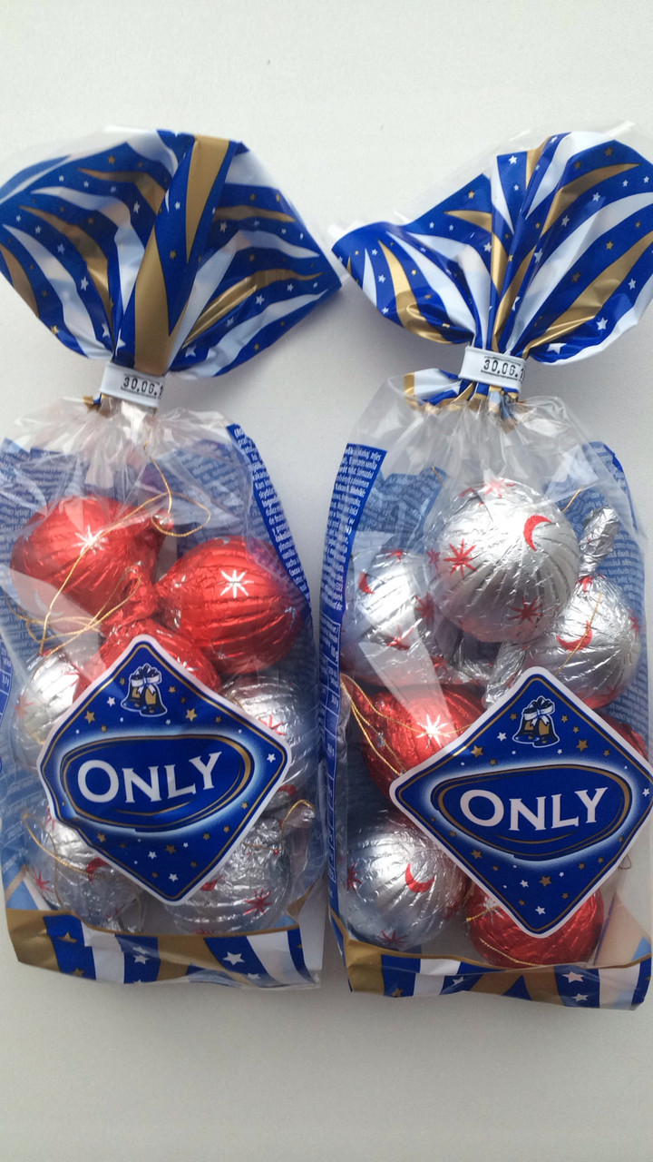 Набір шоколадних іграшок на ялинку – прекрасна прикраса, а головне, що їх можна діткам з’їсти. В наборі 7 шоколадних кульок ( 5см*5см) загорнутих в блискучу фольгу, на якій зображені місяць і зірочки. Вгорі кулі є золотисті ниточки, за які вони вішають на ялинку і не тільки…ними можна прикрашати святковий стіл…торти…десерти…і т. д….наскільки багата ваша фантазія… з наступаючими вас святами…гарного настрою…
