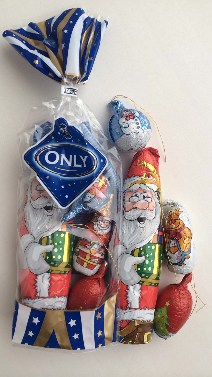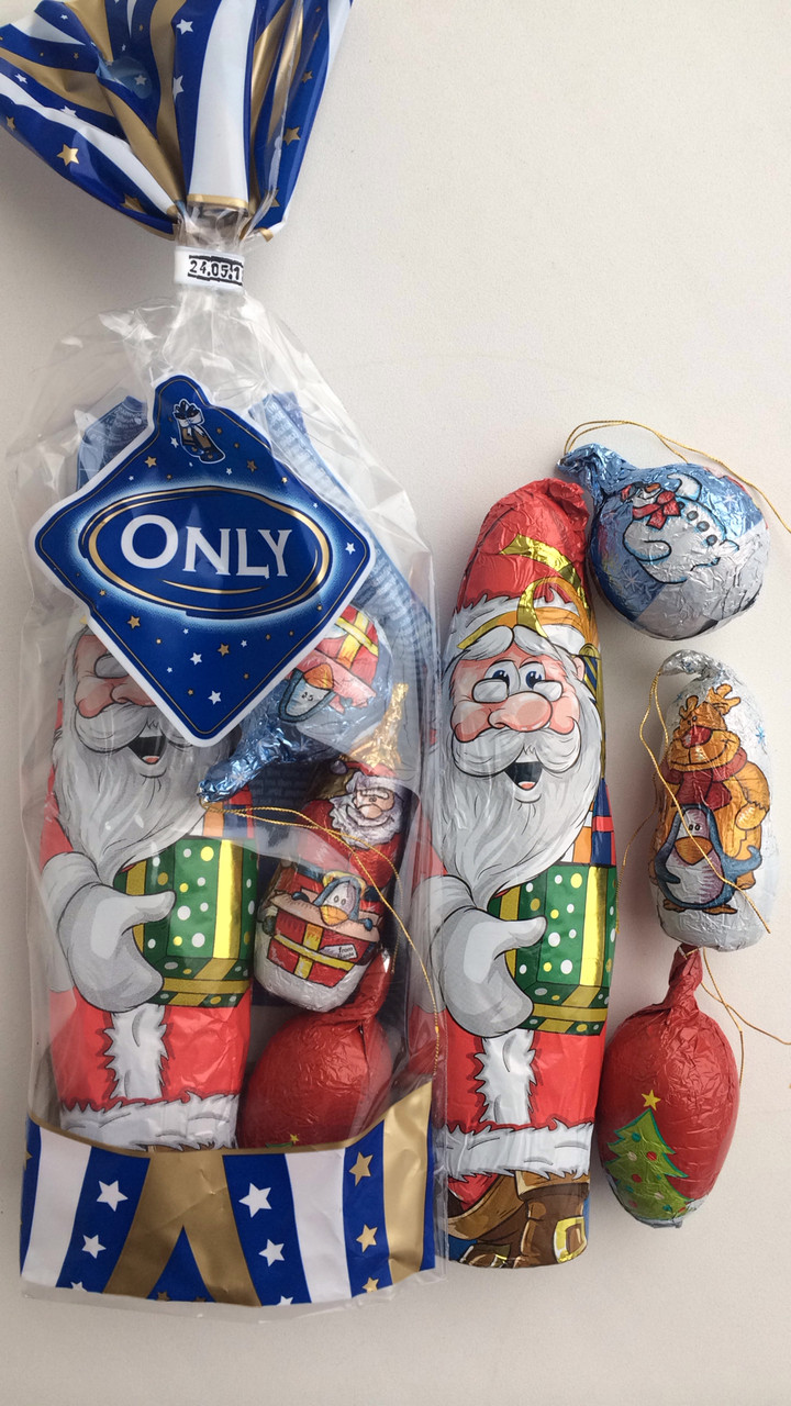 м Набір шоколадних іграшок на ялинку – прекрасна прикраса, а головне, що їх можна діткам з’їсти. В наборі 7 шоколадних кульок ( 5см*5см) загорнутих в блискучу фольгу, на якій зображені місяць і зірочки. Вгорі кулі є золотисті ниточки, за які вони вішають на ялинку і не тільки…ними можна прикрашати святковий стіл…торти…десерти…і т. д….наскільки багата ваша фантазія… з наступаючими вас святами…гарного настрою…