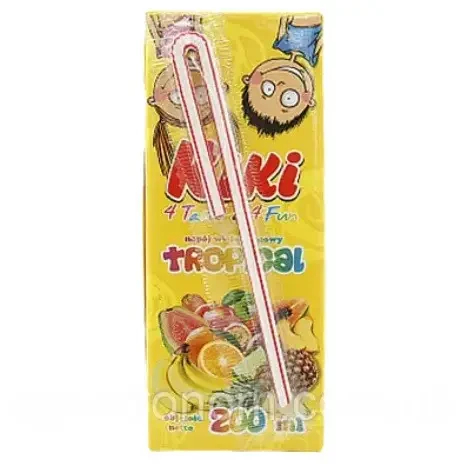 Сік дитячий Kiki тропік Польща 200 мл Найсмачніший тропічний сік, купажований із концентрованих соків із трубочкою. Якість і безпека продукту, підтверджена сертифікатом ISO 22000. Польський сік KIKI — це смачний і корисний напій. Сік розфасований у зручні картонні коробочки з трубочками. Напій має масу корисних і поживних речовин. Ваші діти будуть у захваті від цих соків, адже його дуже зручно брати із собою в садок, школу або на прогулянку. Виробництво компанії розташоване на території Польщі, тому виробники повністю дотримуються нормативів Європейського Союзу, що говорить нам про найвищу якість продукту. Склад: вода, сік фруктовий із соку концентрованого 27%, цукор, ароматизатор, регулятор кислотності — лимонна кислота.