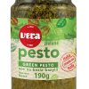Вера Песто зелена. Соус на основі базиліку 190 г Класичний зелений песто є одним із кулінарних символів Італії. У традиційному песто основну роль відіграють трави, особливо базилік, а також горіхи, пармезан та оливкова олія. Зелений песто широко використовується. Банку з традиційною італійською пастою можна використовувати в стравах із пасти та сиру, додавати в м’ясні та рибні страви, використовувати як доповнення до хліба або основи маринаду або готувати супи. Ароматний зелений песто Вера — універсальний продукт, який неабияк збагатить найпростіші страви. інгредієнти: базилік (38%), соняшникова олія, оливкова олія, горіхи кеш’ю, сичужний сир (з молока, яйця), йогурт (з молока) , сіль, цукор, сир Пекоріно Романо (з молока) , кедрові горіхи, часник ( 1%), регулятор кислотності: молочна кислота, аромат.