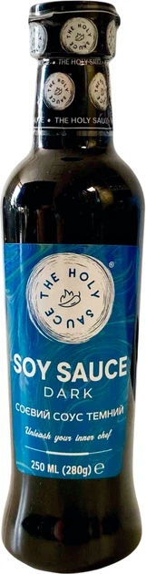 Соєвий соус темнийThe Holy Sauce Dark 250 мл Іспанія Темний соєвий соус бренду The Holy Sauce – це темний соєвий соус з глибоким, насиченим та солонувато-карамельним смаком, який виробляється в Індії з використанням методів натуральної ферментації та витримки. Ідеально підходить для маринадів, смаження, а також для надання кольору та насиченості стравам з рису, локшини, м’яса та овочів.