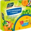 Суп гороховий з куркою Тітя Соня 180 г Гарячі супи є важливим складником нашого раціону та містять необхідні організму поживні речовини. Пакет, вага 180 г. 6 порцій, 1,6 л супу. Склад: Горох варений мелений (83,15%), сіль кухонне борошно пшеничне, олія пшенична, м'ясо куряче (порошок), овочі сушені та спеції (морква, цибуля ріпчаста, зелень петрушки, куркума, перець чорний мелений), цукор, цибуля смажена, глутанат натрію, ароматизатор натуральні "бульйон курячий".