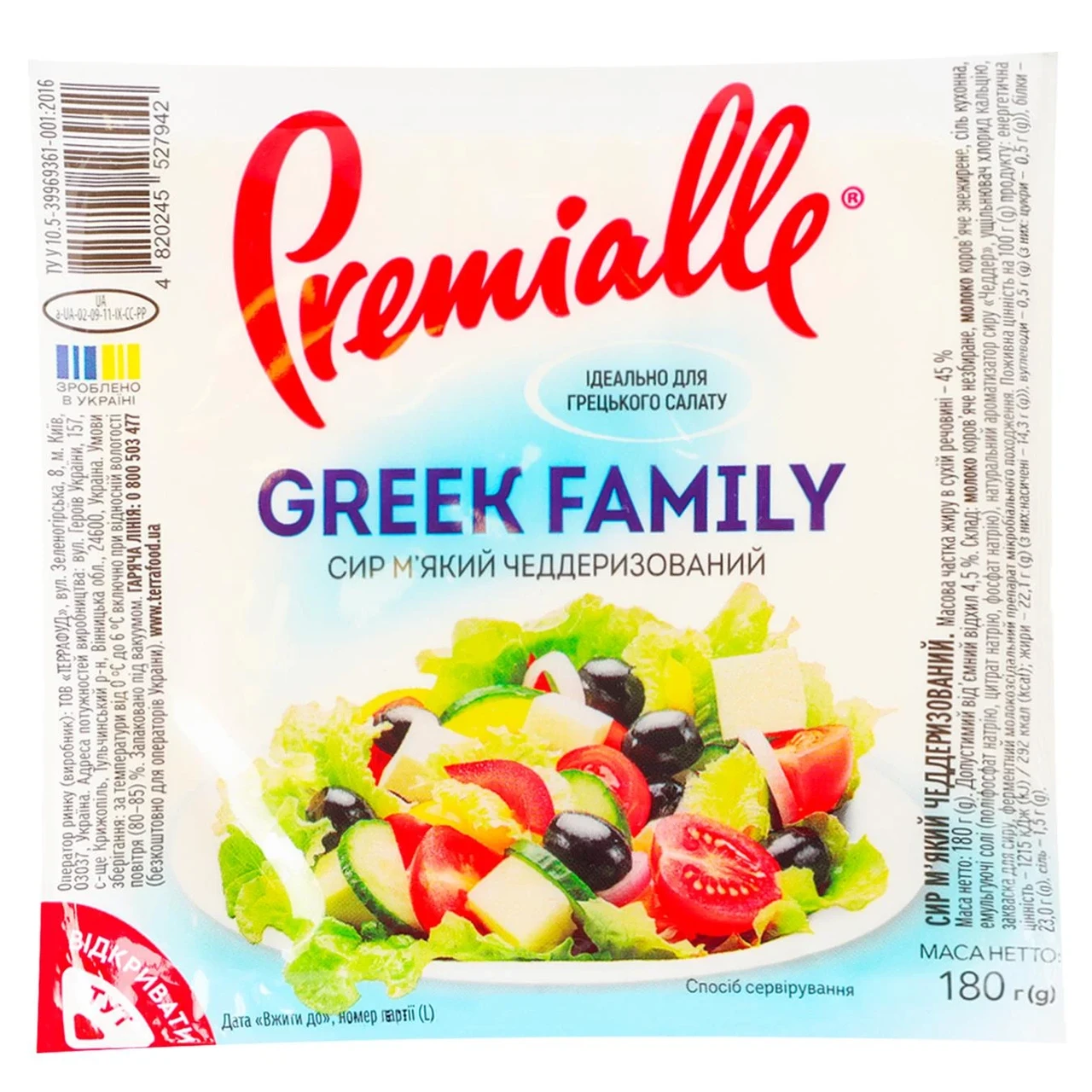 ОПИС Mozzarella — один з основних продуктів італійської кухні. Моцарела — молодої італійський сыр родом із регіону Кампанія. Класична моцарела (Mozzarella di bufala campana) виробляється з молока чорних буйволців, проте в продажу практично завжди наявна моцарела з коров’ячого молока. Цей сир продаються у формі білих кульок, замочених у розсолі, оскільки він довго не зберігається. Кульки білої моцарели використовуються для приготування салатів і холодних закусок, національним стравою Італії є Капрезе. По черзі викладені скибочки моцарели, і помідорів, і листочки базиліка, кольори інгредієнтів імітують забарвлення прапора Італії. Історія появи Донині невідома, хто ж усе-таки привів буйволів до Італії. Одні кажуть, що Ганнібала, інші, що араби, а деякі вірять, що індуси. Вважається також, що цей сир з’явився в першій столітті та винайшли його зовсім випадково. У той час холодильників, як відомо, не було, і ось місцеві мешканці невеликого міста в регіоні Кампанія сховище молоко в шлунку буйволиці в льоху. Одного разу вони зовсім забули про молоко, а коли запам’яли, то виявили сир у формі кульки з м’якою сирною масою всередині. Згодом сирширився й в інші регіони Італії. Сьогодні найкраща моцарела виробляється в регіоні Кампанія, особливо вважається, що моцарела з Казерти (Caserta) і Батtipaglia — над будь-яких похвал. Крім молока, іншою відмітною рисою моцарели є її тягуча текстура. Молоко вариться за певної температури, після того, як сироватка починається відокремлюватися, вміст постійно помішують, поступово утворюється тягуча маса pasta filata. І найцікавіше: майстри починають ліпити та різати (mozzare) сир, і це процес називається “mozzatura”. Звідси й назва сиру. Процес не з легких, сировари з ніжністю й любов’ю витягують сир, формуючи гладкі кульки, рівні, акуратні. Потім занурюють моцарелу в сольовий розчин для збереження її свіжості та м’якості. Склад Молоко коровʼяче незбиране, молоко коровʼяче знежирене, сіль кухонна, емульгуючі солі (поліфосфат натрію, цитрат натрію, фосфат натрію), натуральний ароматизатор сиру «Чеддер», ущільнювач хлорид кальцію, закваска для сиру, ферментний молокозсідальний препарат мікробіального походження.