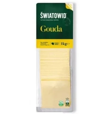 Сир у слайсах MLEKOVITA GOUDA 1кг Польща Дуже м’який вершковий смак! популярний напівтвердий сир із гладкою, щільною, однорідною консистенцією та м’яким вершковим смаком, який за класичним рецептом виготовляється з коров’ячого молока. Цей сир має дуже довгу історію і до цього залишається популярним для гурманів з усього світу, купуючи різні варіації рецептур — термін витримки, копчення, різні домішки, використання овечого та козячого молока та ін.