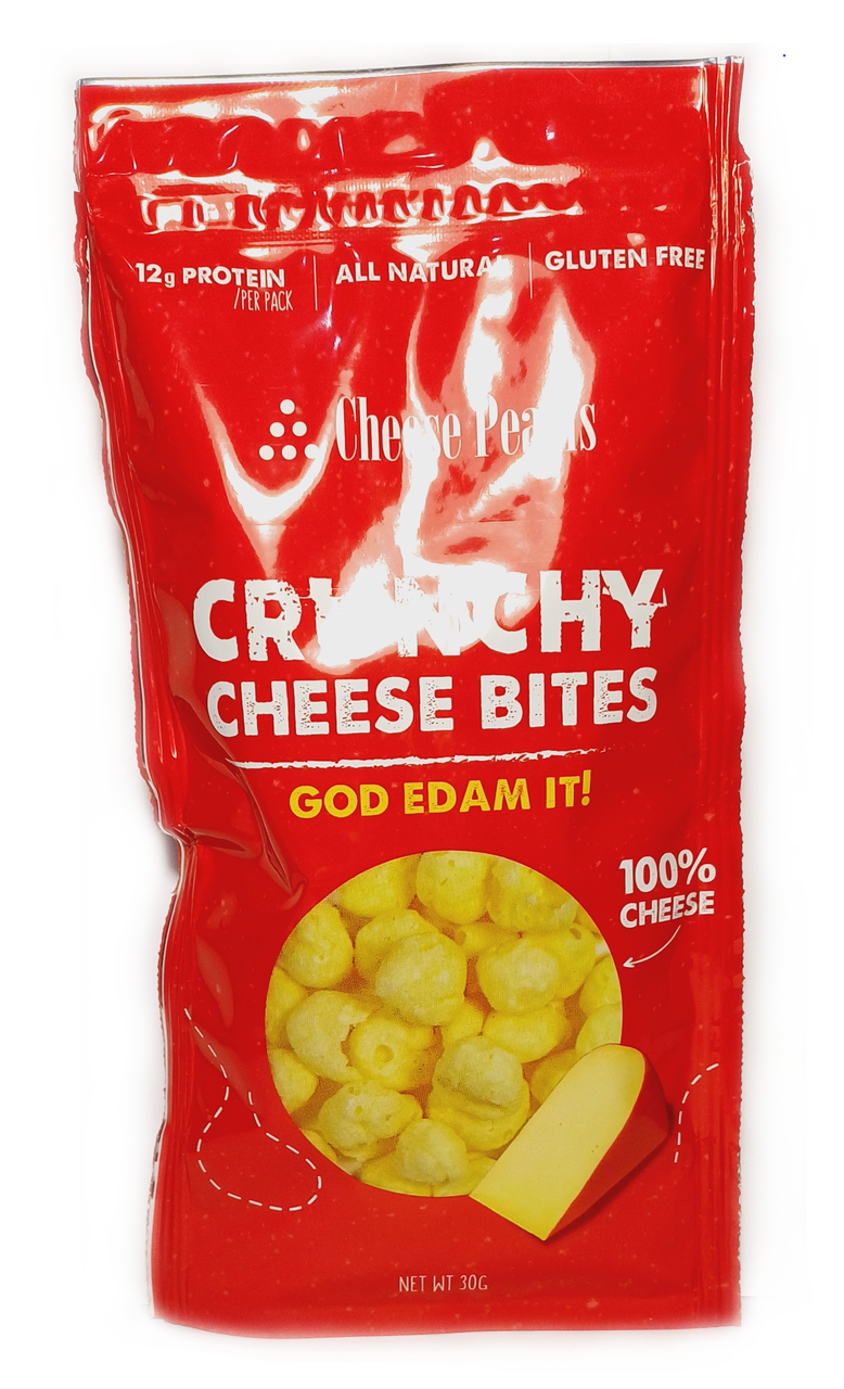 Сирні хрусткі шматочки БЕЗ ГЛЮТЕНА Cheese Pearls Crunchy Edam 30 г Греція Хрусткі сирні шматочки з натуральних продуктів: 100% сир Едам (пастеризоване коров’яче молоко, сольовий мікробіологічний сичужний фермент, закваска, барвник: анато). БЕЗ ГЛЮТЕНА.