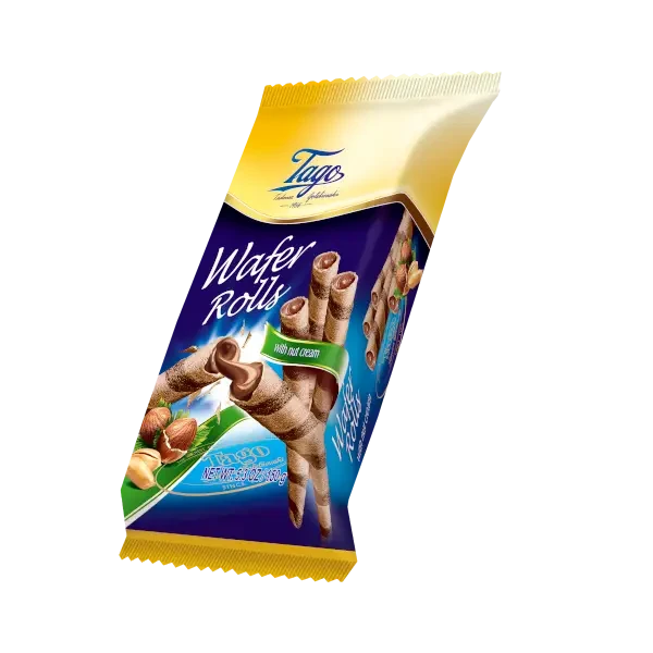Вафельные трубочки с ореховым кремом Tago Wafer Rolls With nut cream 150г Вафельные трубочки Tago с ореховым кремом , 150 г – это хрустящие вафельные трубочки, щедро наполненные нежным кремом ,. Изготовлены по классической рецептуре из качественных ингредиентов, идеально смакуют с кофе, чаем или в качестве сладкого перекуса в течение дня.