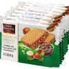 Вафлі з лісовим горіхом Feiny Biscuits Haselnuss Schnitte – це своєрідний «сендвіч», де між двома хрусткими шоколадними вафельками знаходиться товстий шар какао. з фундуком Кожен «сендвіч» обгорнутий в розкішну золоту фольгу. Це ідеальна закуска до кави або чаю. Завжди можна взяти з собою пару вафель в дорогу, щоб перекусити, дати дитині в школу, і вони не займуть багато місця. В упаковці: 8 штук окремо упакованих, хрустких вафельок.