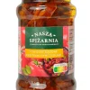 В'ялені томати в олії з насінням гарбуза і травами Nasza Spizarnia 270г Польша В'ялені томати з насінням гарбуза і травами Nasza Spizarnia в олії Pomidory suszone w oleju z ziołami z pestkami dyni 270 г В'ЯЛЕНІ ПОМІДОРИ В ОЛІЇ З ТРАВАМИ І ГАРБУЗОВИМ НАСІННЯМ. В'ялені помідори в олії з травами і гарбузовим насінням мають унікальний смак і запах - поєднання солодощі дозрілих під турецьким сонцем томатів з ароматом трав і гарбузового насіння. Ці смачні готові закуски просто балують наш смак. Їх можна подавати з улюбленим сиром або як доповнення до салату, піци, шашликів чи хрустких грінок. Їх також можна використовувати як начинку для м'ясних страв. Склад: в'ялені томати 55% (в'ялені томати, вода, цукор, сіль, винний оцет), рослинна рапсова олія 37,6%, гарбузове насіння 7%, суміш трав 0,4%. Зберігати в сухому і прохолодному місці. Після відкриття зберігати в холодильнику.