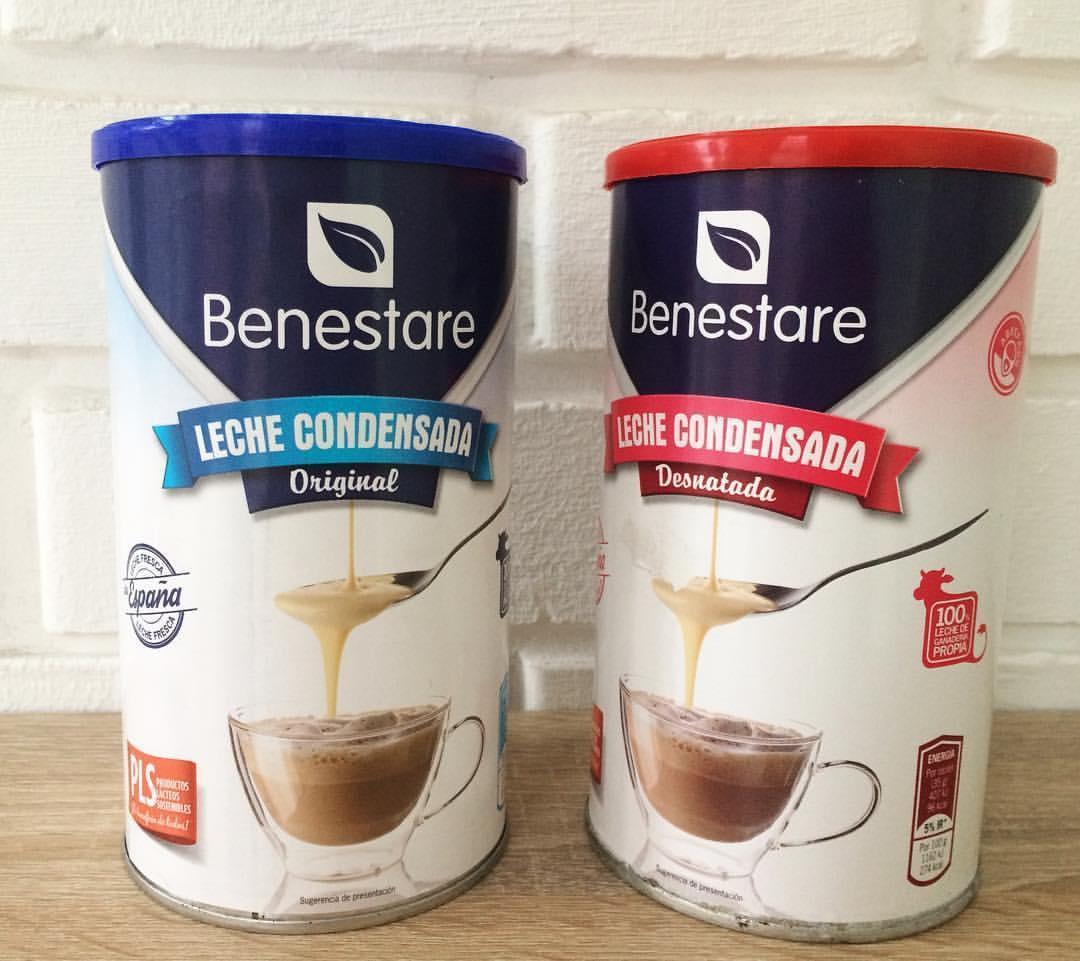 Згущене молоко Benestare Leche Condensada Desnatada 1035г Іспанія Все молоко тваринного походження не містить глютену. Харчова цінність на 100г на 35г – жири 8г 2,8г – з яких насичений. 5,7г 2,0г вуглеводи 55г 19,3г білок 7,4г 2,6г сіль 0,33г 0,12г кальцій 235 мг 82мг