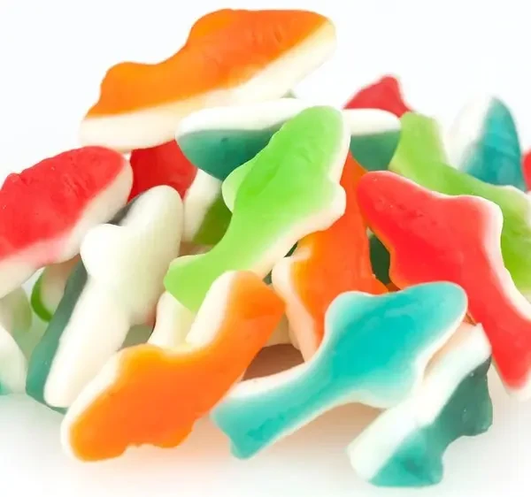 Желейні цукерки “Акула” Trolli Haifische Німеччина 150г Смачні та здорові жувальні солодощі створені виключно із натуральних інгредієнтів, безпечних для здоров’я. Желейні частування представлені у вигляді різнокольорових акул з м’якою консистенцією та глибоким фруктово-ягідним ароматом. Ці ласощі завоювали серця людей усіх поколінь.