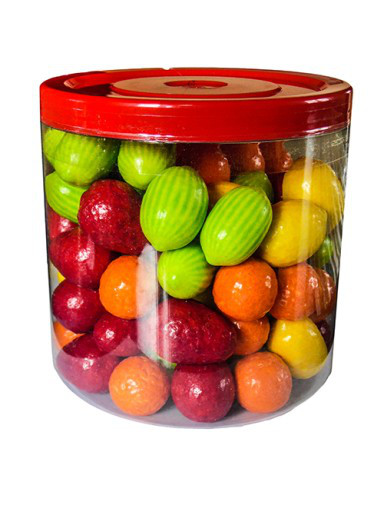 у формі гігантських фруктів з фруктовим смаком з порошкоподібної начинкою з кислинкою , пр-ва Іспанії. 18 гр х 75 шт. Без глютену.