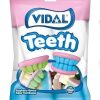 Жувальні зефірні цукерки Щелепи БЕЗ ГЛЮТЕНУ Vidal Teeth 70г Іспанія Жувальний зефір VIDAL – це улюблені ласощі дітей та дорослих. Солодкі та барвисті зефірні жувальні цукерки з малиновим смаком у вигляді зубів ідеально підходить для роздачі біля дверей, для вечірок на Хеллоуїн або жахливий вечір кіно. Дуже реалістичні та різні кольори, синій, жовтий, зелений, рожевий та білий. Насолоджуйтесь цими класичними цукерками в будь-якому місці та в будь-який час.